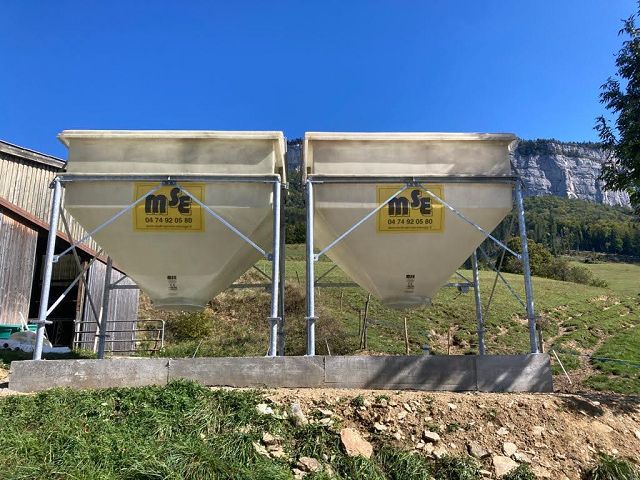 Trémie rectangulaire pour stockage de granulés ou céréales.