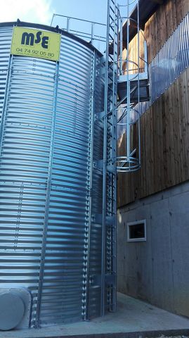 Cylindrique en tôle ondulée et montants en acier galvanisé.